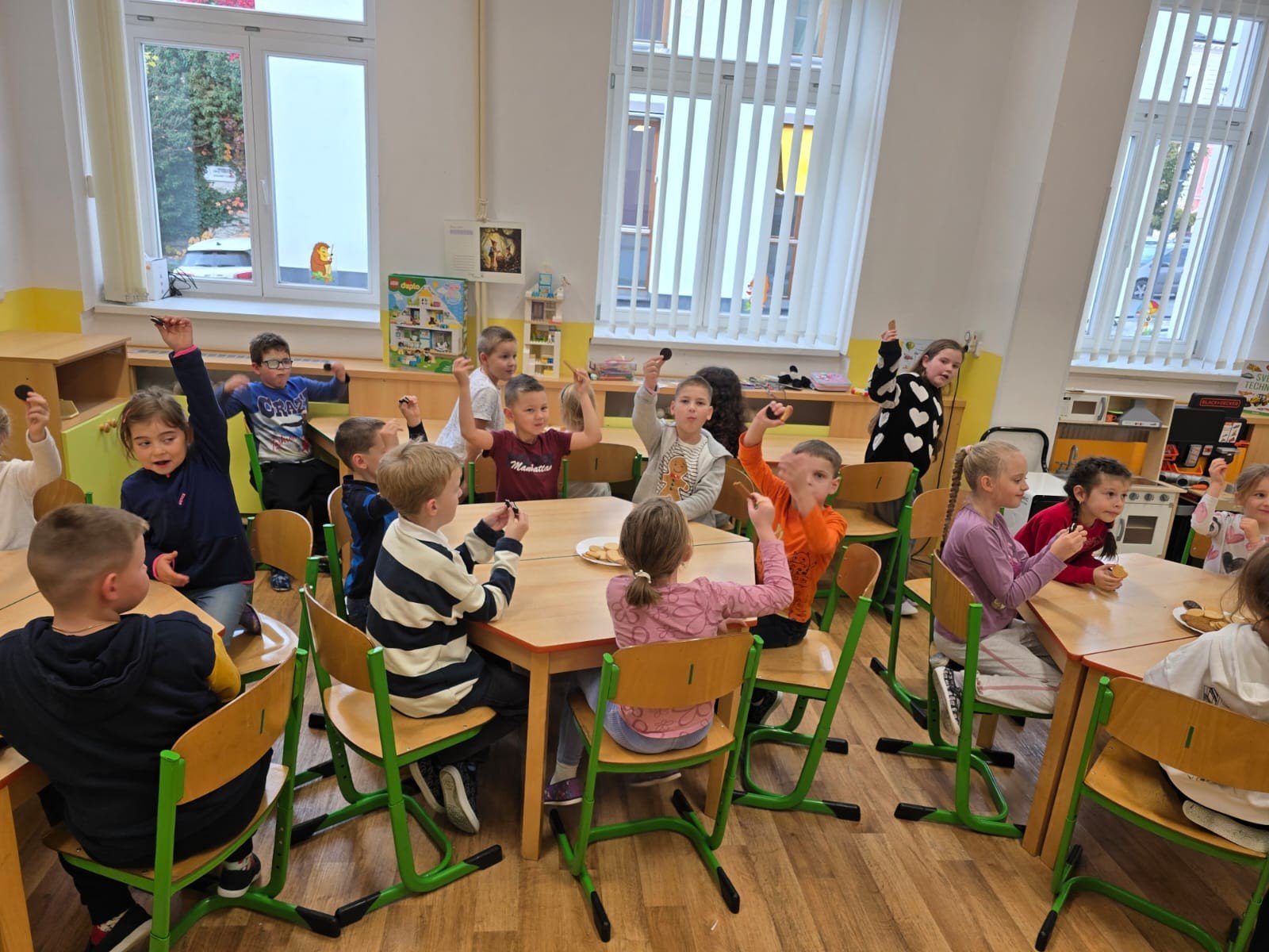 V pátek jsme se ve školní družině vzájemně inspirovali. Druháci a někteří třeťáci navštívili prvňáky na jejich zábavné angličtině. Společně plnili úkoly spojené s obrázky a anglickými slovíčky. Na oplátku pak společně ochutnali sladké pohoštění a nakrájená jablíčka, která připravili na společný závěr. Odpoledne se líbilo a teď hurá na prázdniny.
