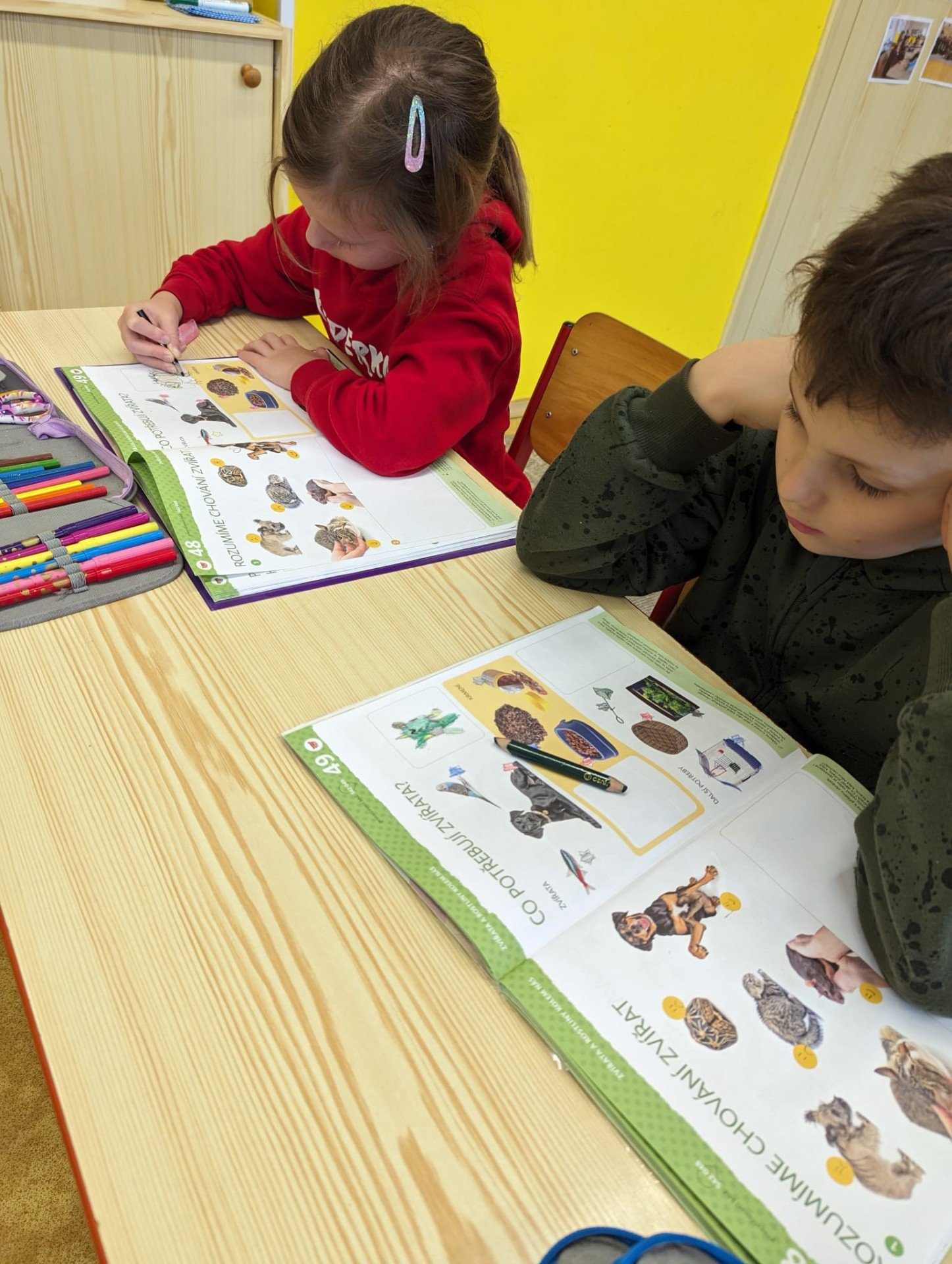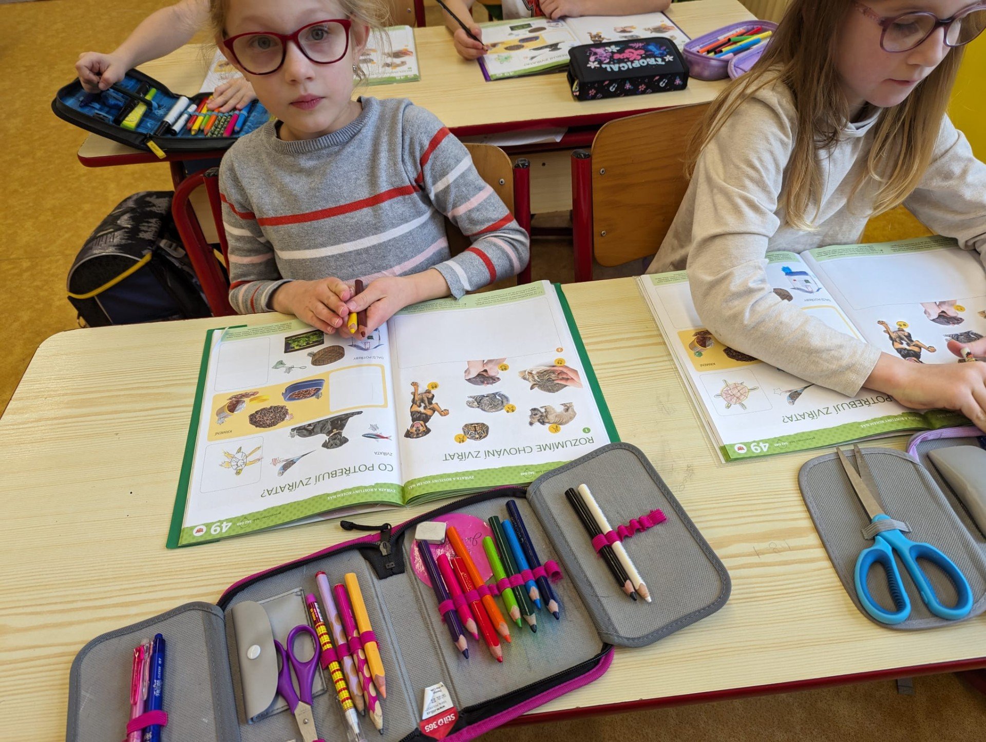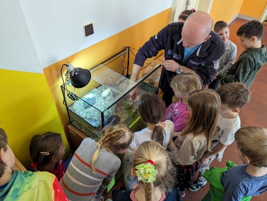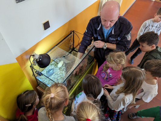 Učíme se pečovat o domácí mazlíčky, jaké potřebují podmínky, krmení a další pomůcky k chovu. A abychom nezůstali jen u práce s učebnicí, pomohli jsme s péčí o školního mazlíčka. Pozorovali jsme Rychlíkovo chování, vyčistili mu obydlí a nakrmili masem.