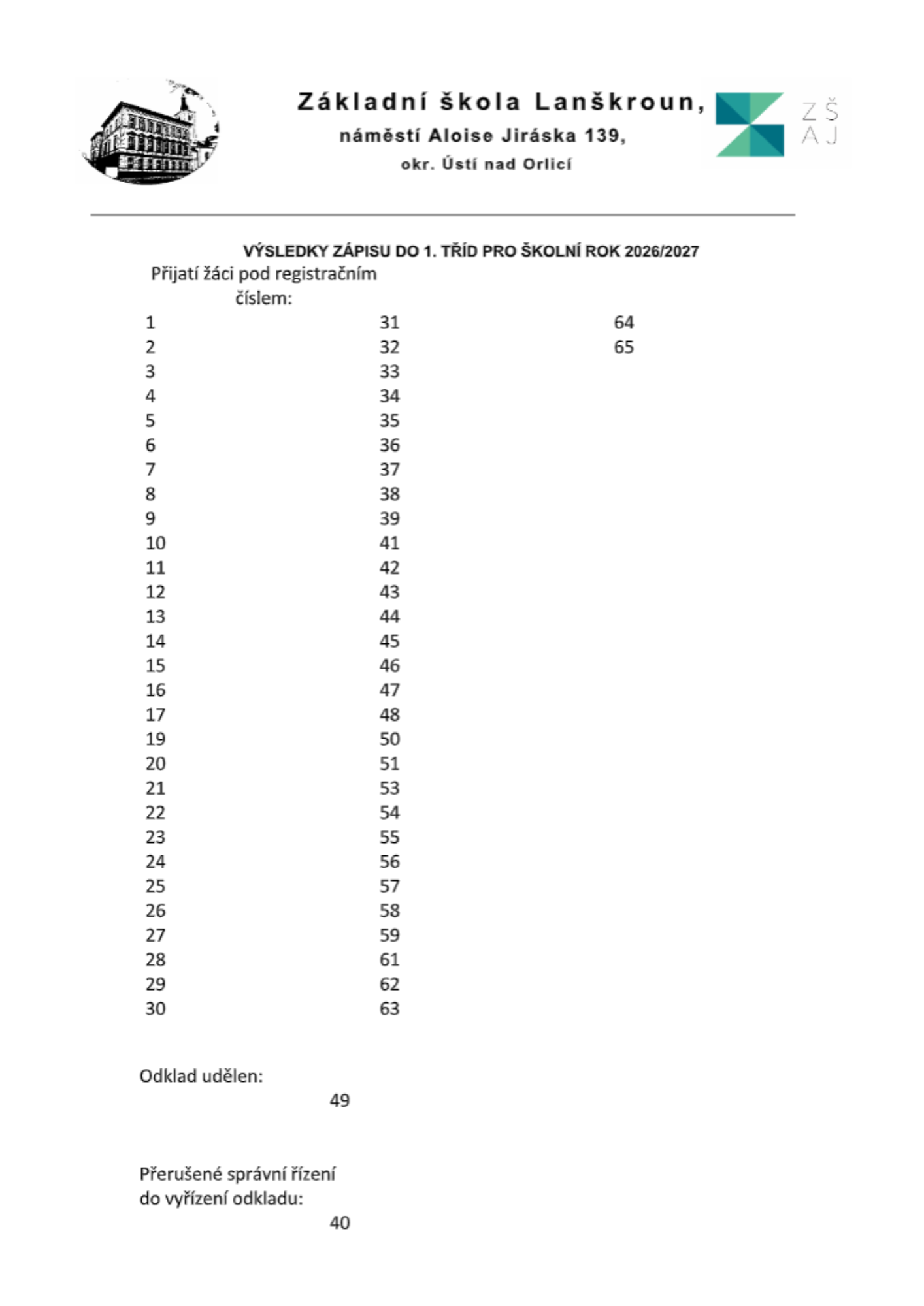 ZŠ A. Jiráska Lanškroun, IČO: 61234001, nám. Aloise Jiráska 139, 563 01 Lanškroun,